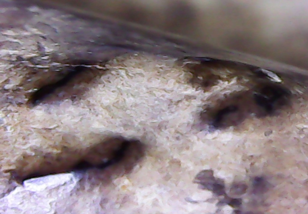 Squatting beast raised reliefe Figure 38. Figure 37 Hongshan zoomorphic pseudomorph magnified. Squatting beast with raised relief and magnified view.
